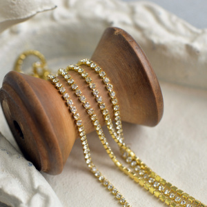 Цепочка "Стар", со стразами Cristal, цвет золото, 2 мм, стразовая лента