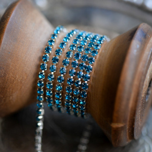 Цепочка "Стар", со стразами Aquamarine, цвет серебро, 2 мм, стразовая лента