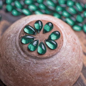Стразы пришивные "Капля" акрил, изумрудный, 15х9х6 мм