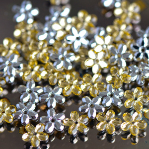 Стразы пришивные "Грани" акрил цветок, золотой, 8x8x2 мм