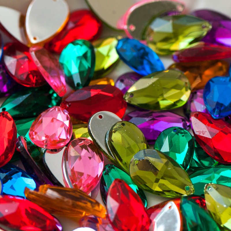 Акриловые пришивные стразы в 2 раза более доступны, чем пришивные стеклянные, и в разы, чем аналогичные стразы от Swarovski.