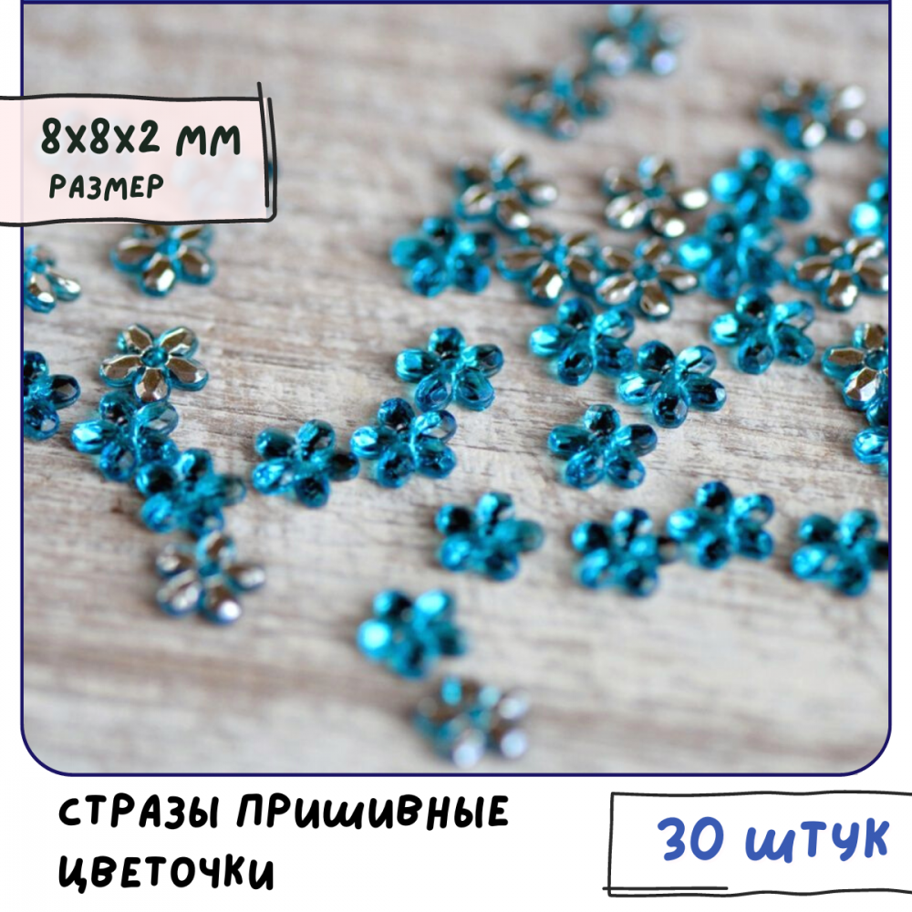 Пришивные акриловые стразы с плоским основанием в форме незабудки (без клея) широко используются для украшения одежды и аксессуаров. Легкие, не утяжеляют изделие. Вам не нужен паяльник для камней, стразы надежно крепятся к ткани простым пришиванием.