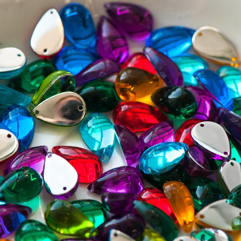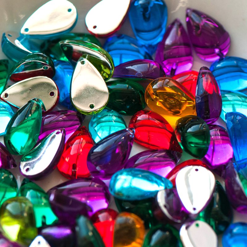 Акриловые пришивные стразы в 2 раза более доступны, чем пришивные стеклянные, и в разы, чем аналогичные стразы от Swarovski.