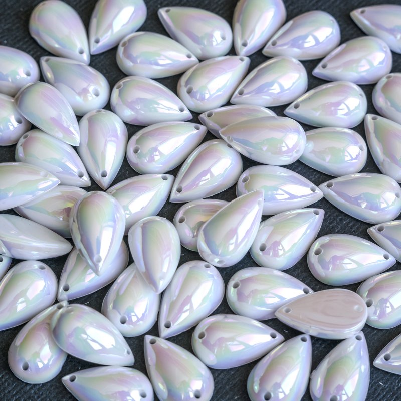 Стразы пришивные "Капля", акрил, капля, цвет белый радужный, 15х9х6 мм