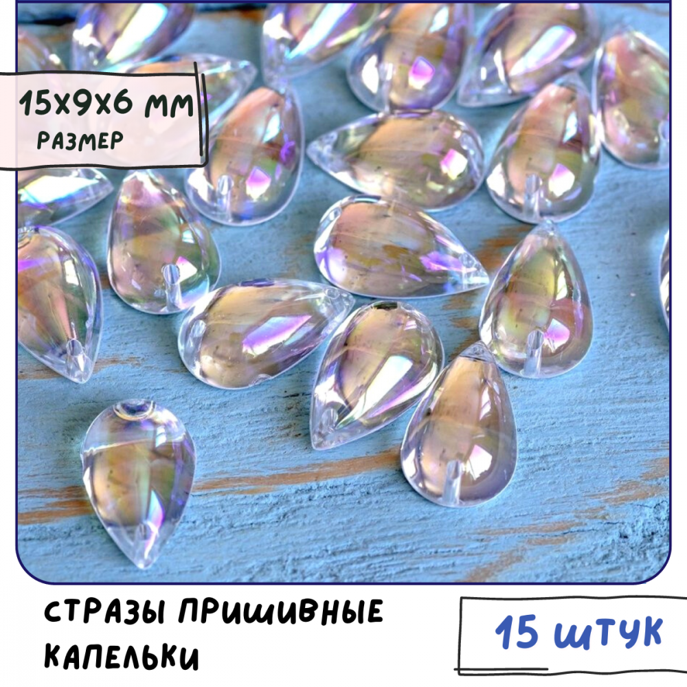 Стразы пришивные "Капля", акрил, капля, цвет бензиновый, 15х9х6