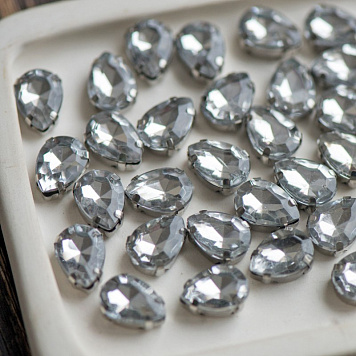 Стразы в цапах, капля, платина/акрил, цвет прозрачный, 14x10x5.5 мм
