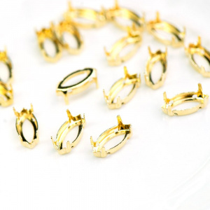 Цапы для стразов Navette, открытые, золото, 18х9 мм