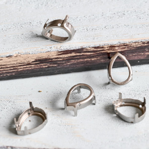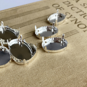 Цапы для стразов овальные, закрытые, серебро, 25х18 мм