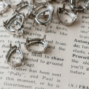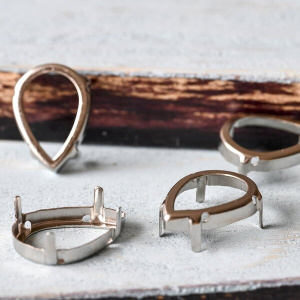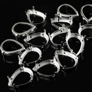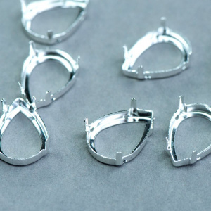 Цапы для стразов каплевидные, открытые, серебро, 18х13 мм